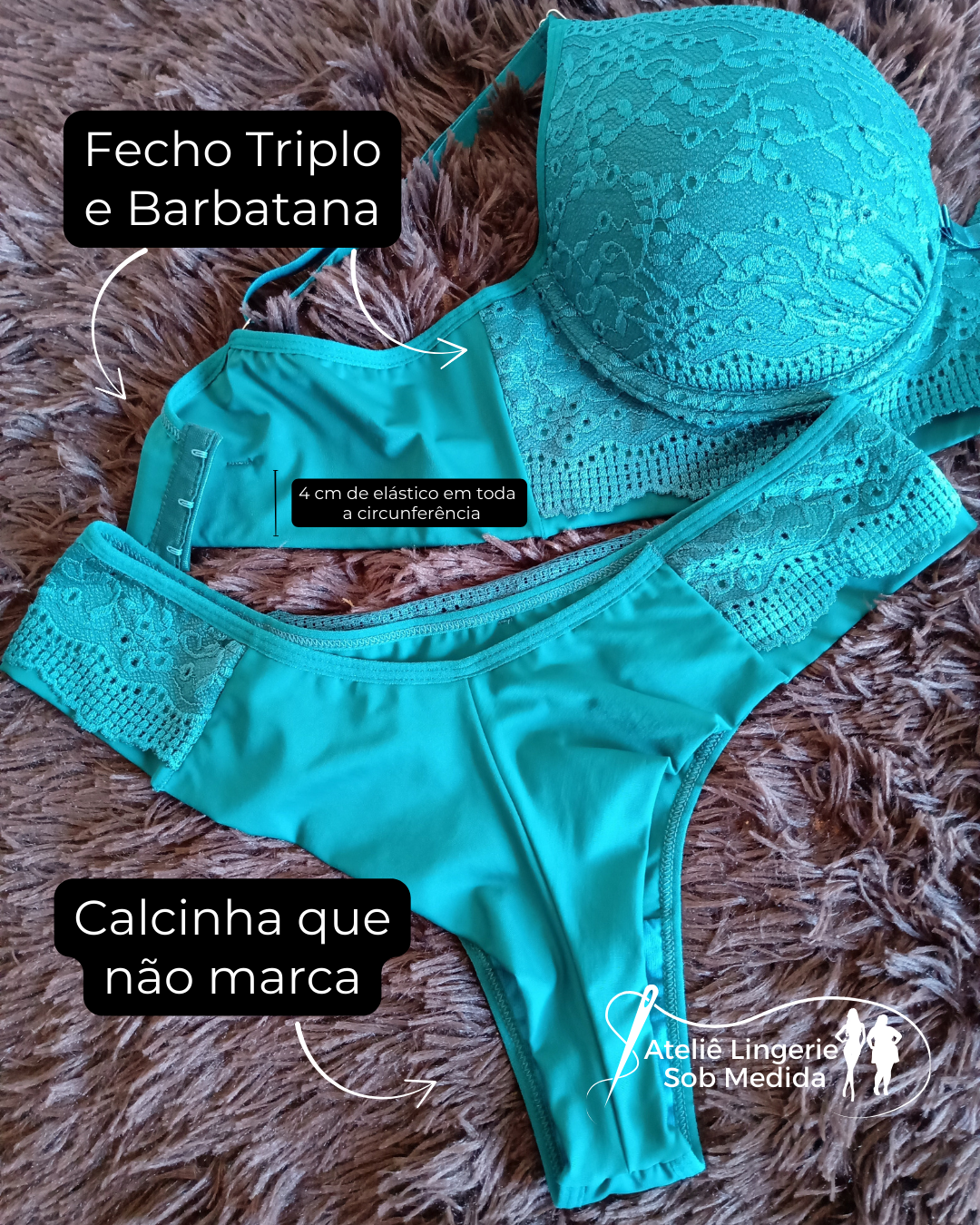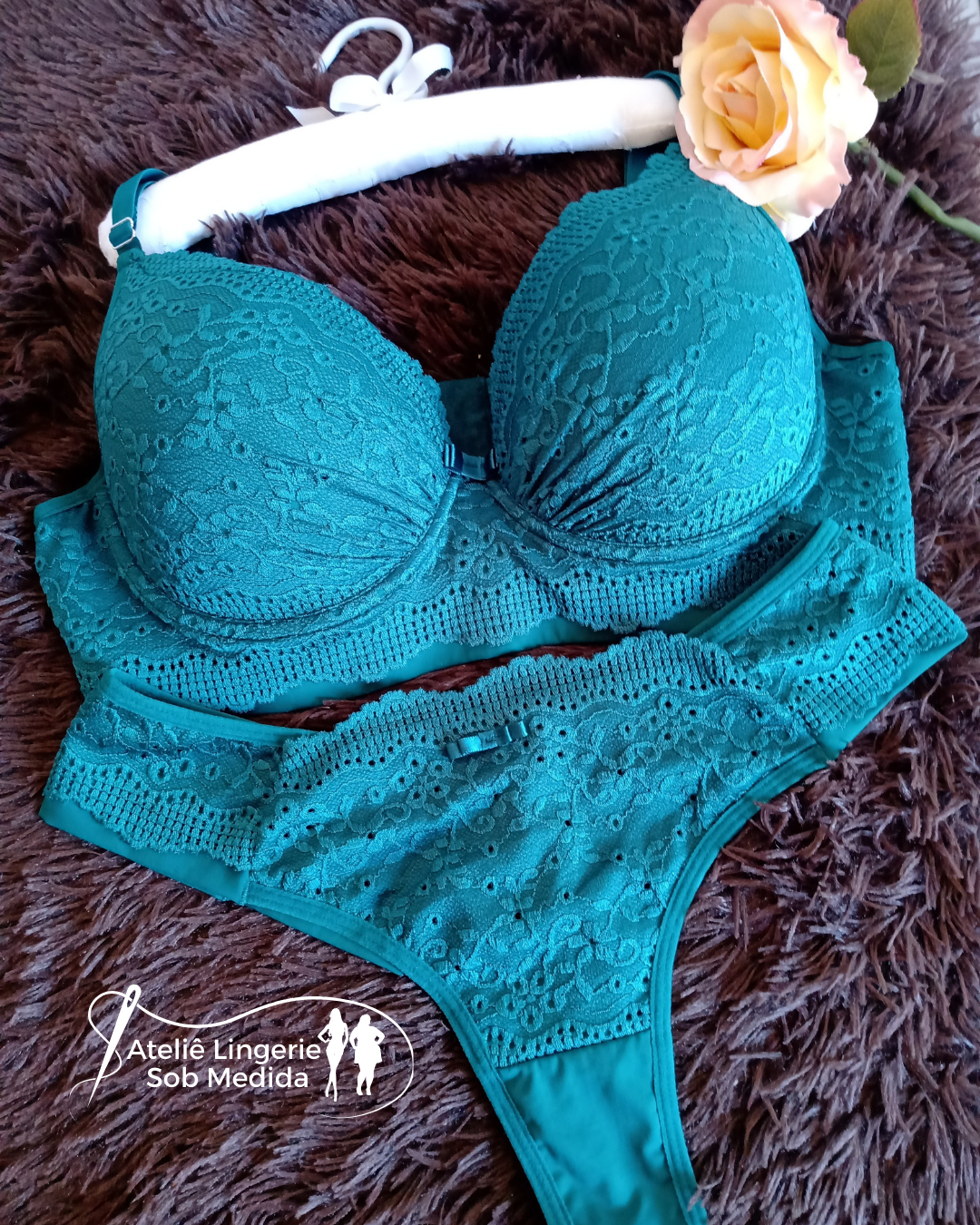Se você procura um conjunto de lingerie que una sofisticação, caimento perfeito e conforto absoluto, este modelo em verde esmeralda é a escolha ideal.